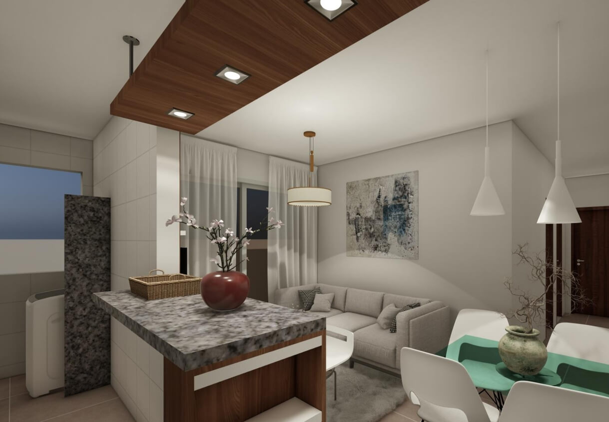 O apartamento possui uma planta inteligente de 55,40 m², projetada para otimizar cada espaço. Com 2 quartos, incluindo uma suíte, você desfrutará de privacidade e conforto. A sala ampla é ideal para receber amigos e família, enquanto a cozinha integrada proporciona praticidade no seu cotidiano. Imagine-se tomando seu café da manhã na varanda, com uma vista que traz tranquilidade para o seu dia.